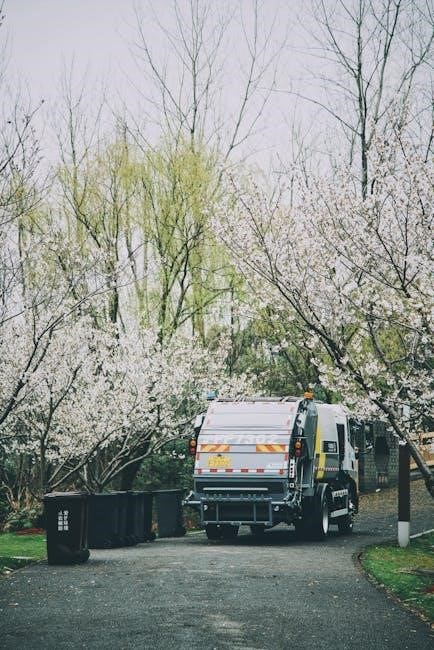 The PDF details seasonal collection schedules, often varying between spring and fall due to increased yard maintenance activities. It specifies weight limits for containers and bag quantities to ensure efficient collection. Residents are advised to avoid mixing yard waste with other materials, such as rocks or construction debris.